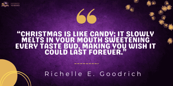Richelle E. Goodrich’s quote likens Christmas to a delightful treat that gradually unfolds its sweetness, enhancing our every moment. It conveys the enchanting feeling of the holiday, where the joy and warmth seep into our lives, leaving us yearning for its enduring magic, just like a cherished candy we wish would never end.