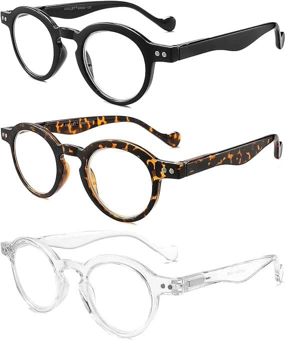 5. AMILLET 3-Pack Retro Round Reading Glasses